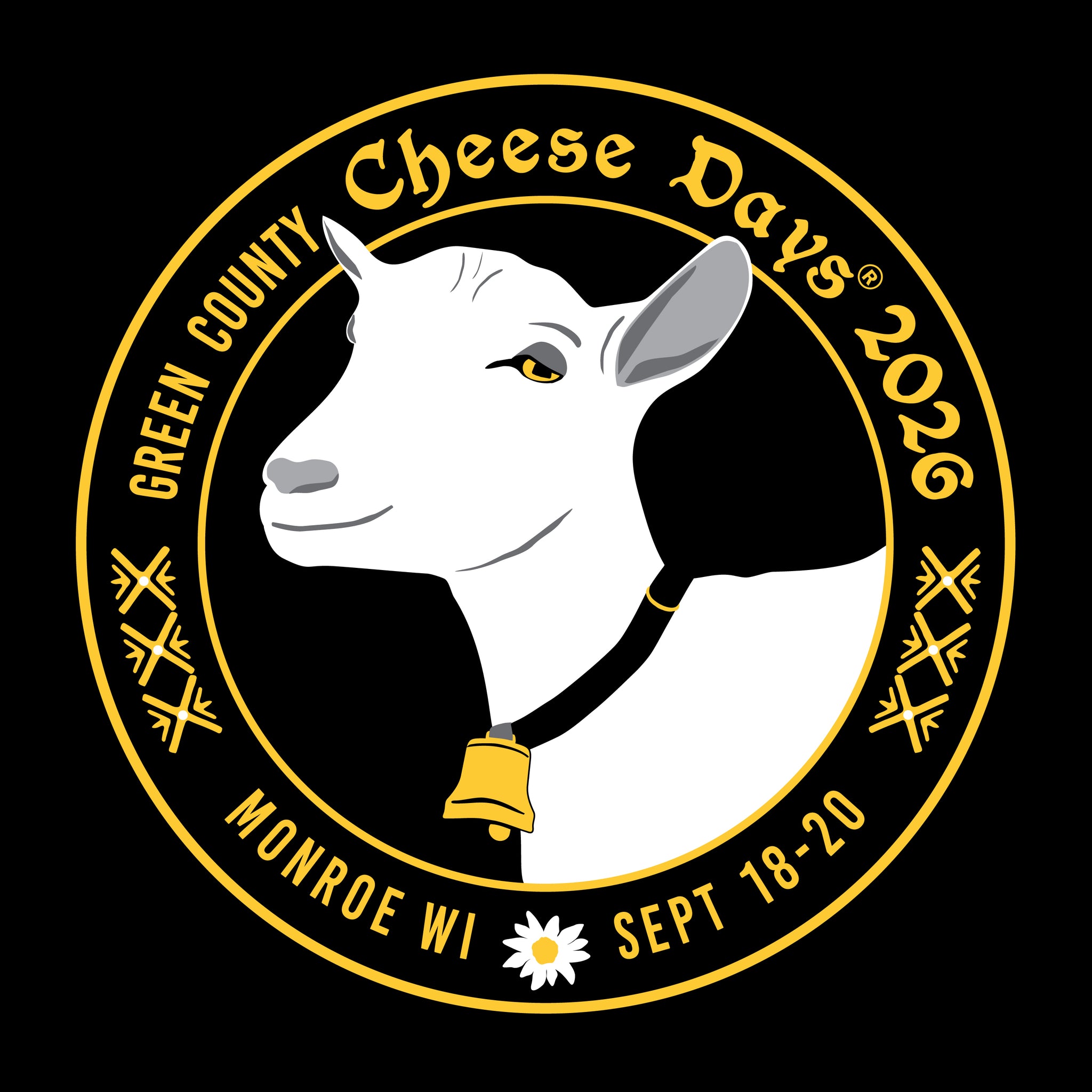 The 2026 button logo design is based on a local celebrity goat named Ivory, who has appeared in Cheese Days Parades and the Heidi Festival. V-neck 100% combed and ring-spun cotton, relaxed fit. Also available in ladies red crewneck.